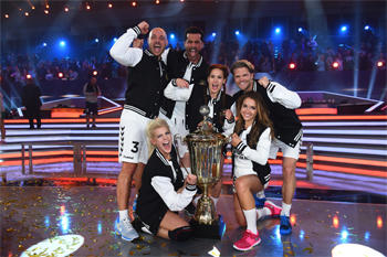 Überraschungssieger mit der Kraft der Rosen: Das Team "Bachelor" gewinnt in einem Herzschlagfinale „Die große ProSieben Völkerball Meisterschaft“ gegen das Team "Internet". Die neue ProSieben-Event-Show begeistert zum Start herausragende 14,9 Prozent der Zuschauer (14 bis 49 Jahre) am gestrigen Samstagabend. Das Team um Kapitän Paul Janke steigerte sich von Match zu Match im ersten Promi-Völkerball-Turnier der TV-Geschichte. „Wir haben hart gekämpft, wurden von Runde zu Runde besser und haben den Sieg verdient“, sagt Paul Janke. Neues Moderatoren-Duo: Zum ersten Mal moderierten Thore Schölermann und Esther Sedlaczek im mit 7.000 Zuschauern ausverkauften GERRY WEBER STADION in HalleWestfalen gemeinsam eine ProSieben-Live-Show. Neues Kommentatoren-Duo: Zum ersten Mal kommentierten Schmiso und Helmer Litzke gemeinsam ein ProSieben-Sport-Event.
