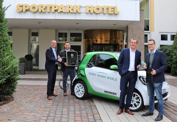 Von der Kooperations-Erweiterung zwischen „Mercedes-Benz BERESA“ und der GERRY WEBER WORLD profitieren künftig zudem die Gäste im GERRY WEBER SPORTPARK HOTEL, da es sich Hotelchef Ben Lambers zur Aufgabe gemacht hat, den Bereich der Elektromobilität weiter zu intensivieren. „Die Nachfrage nach zukunftsorientierten und energieeffizienten Maßnahmen ist vorhanden. Nicht nur wir als Hotel-Verantwortliche thematisieren regelmäßig mögliche Umsetzungen, auch unsere Hotel- und Tagungsgäste erfragen und erwarten aus unternehmerischer Sicht eine nachhaltige Energie- und Ressourceneffizienz.“ Bereits seit Mai 2017 stellt das Vier-Sterne-Haus insgesamt vier „e-bikes“ zur Vermietung zur Verfügung, die „von den Hotelgästen sehr häufig in Anspruch genommen werden", freut sich Ben Lambers über die hohe Nachfrage.