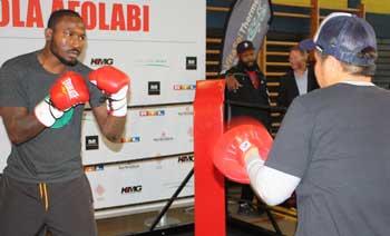 Dagegen ließ es IBO-Titelverteidiger Ola Afolabi bei seinem öffentlichen Training deutlich ruhiger angehen. Ein bisschen Aufwärmen, eine Runde leichtes Schattenboxen, dann noch eine Runde Pratzentraining mit seinem japanischen Konditionstrainer - länger wollte sich der Brite nicht in die Karten schauen lassen. „Ich erwarte einen harten Kampf, den ich sehr ernst nehme. Aber ich bin mir meiner Sache völlig sicher - dieses Mal geht es für Marco nicht gut aus. Mein Herz ist dabei meine beste Waffe. Deshalb lautet meine Botschaft an Marco: viel Glück, pass gut auf Dich auf und komm nach Deiner Niederlage am Samstag gesund und wohlbehalten wieder nach Hause zu deiner Familie.“