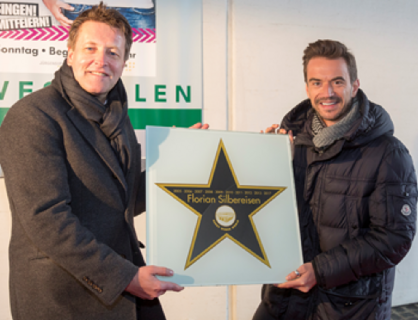 Mit seiner am heutigen Sonntag (19. März) neuen Show "Das Grosse Schlagerfest" gastiert der aus Passau stammende Künstler bereits zum elften Mal in der ostwestfälischen Lindenstadt und infolgedessen ist Florian Silbereisen mit einem "Walk of Fame-Stern" geehrt worden. Auf der "Roger-Federer-Allee", im Zugangsbereich zum GERRY WEBER STADION, sind links und rechts im Straßenverlauf zahlreiche prominente Künstler und sämtliche Sieger der GERRY WEBER OPEN verewigt. Ralf Weber (CEO GERRY WEBER WORLD) hat gemeinsam mit Florian Silbereisen den neuen Stern verlegt. „Eigentlich hat Deine Karriere bei uns 2002 begonnen“, so Ralf Weber, „denn anschließend wurde Dir eine Fernsehshow angeboten. Und damit bist Du auch immer wieder zu uns gekommen, so dass wir Dir für die freundschaftliche Verbundenheit diesen Stern verleihen.“