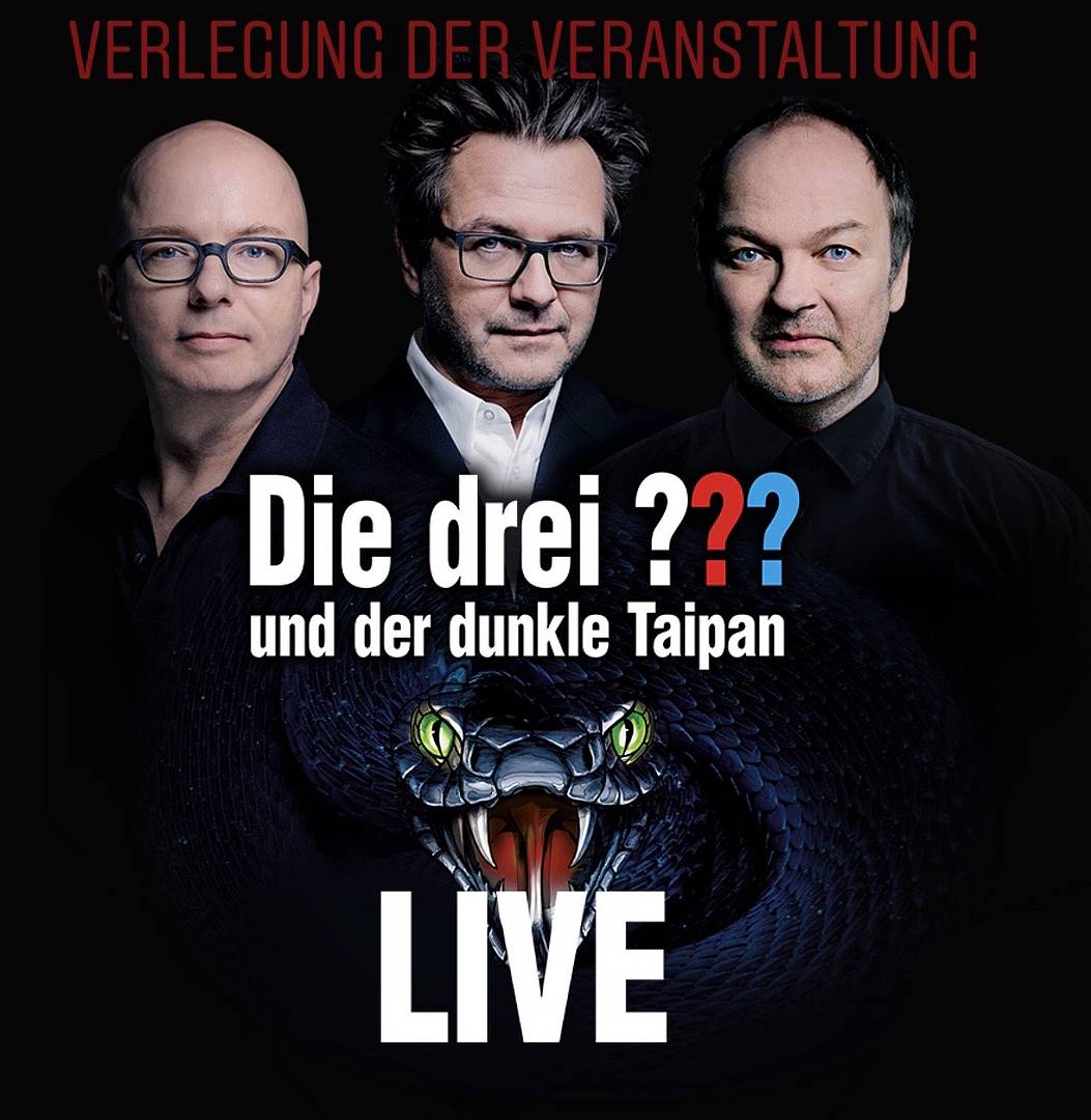 HalleWestfalen. Aufgrund der aktuellen Situation ist das Live-Hörspiel „Die drei ??? und der dunkle Taipan“ auf einen späteren Zeitpunkt verlegt worden. Die dafür erworbenen Eintrittskarten behalten für den Ersatztermin ihre Gültigkeit.