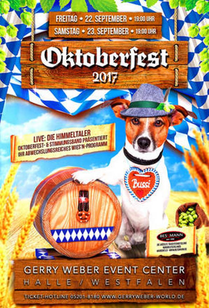 Einen Namen hat sich bei den Besuchern auch die Oktoberfestband „Himmeltaler“ gemacht, die seit 2015 im GERRY WEBER EVENT CENTER ein zünftiges und abwechslungsreiches musikalisches Programm abliefern. So wird es auch am 22. September (Freitag) und 23. September (Samstag) 2017, jeweils ab 19.00 Uhr, sein. Mit einem einzigartigen Show- und Bühnenkonzept ist die Stimmungsband - getreu ihrem Slogan - "A teuflisch, bayrisch guate Partyband" der Garant für Stimmung.