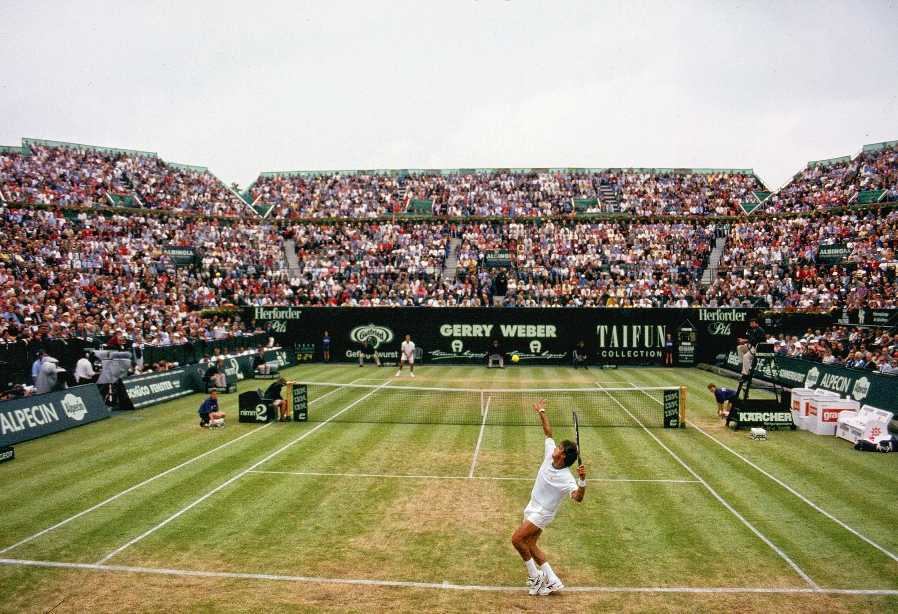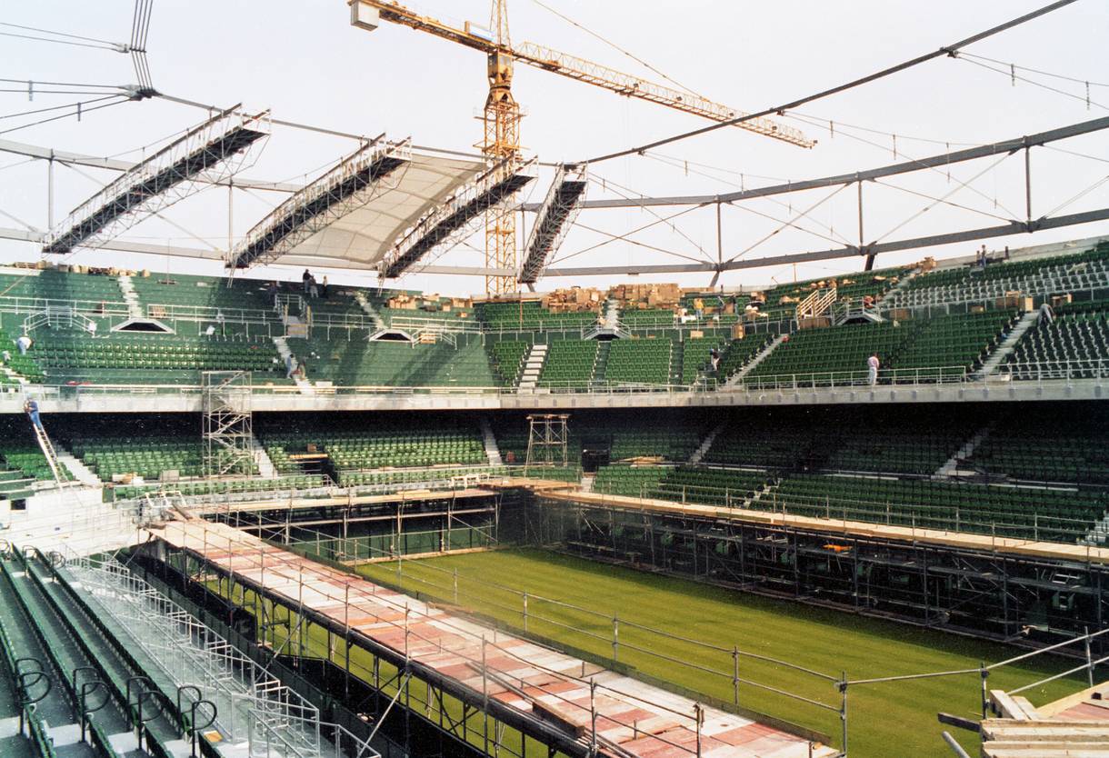 Nachdem bei den 1. GERRY WEBER OPEN ein kompletter Spieltag aufgrund von Regen ausgefallen ist, wird der Bau eines wandelbaren Stadiondachs beschlossen. Zudem wird mit der Errichtung einer Galerie die Zuschauerkapazität von 4.500 auf 11.500 deutlich erhöht.