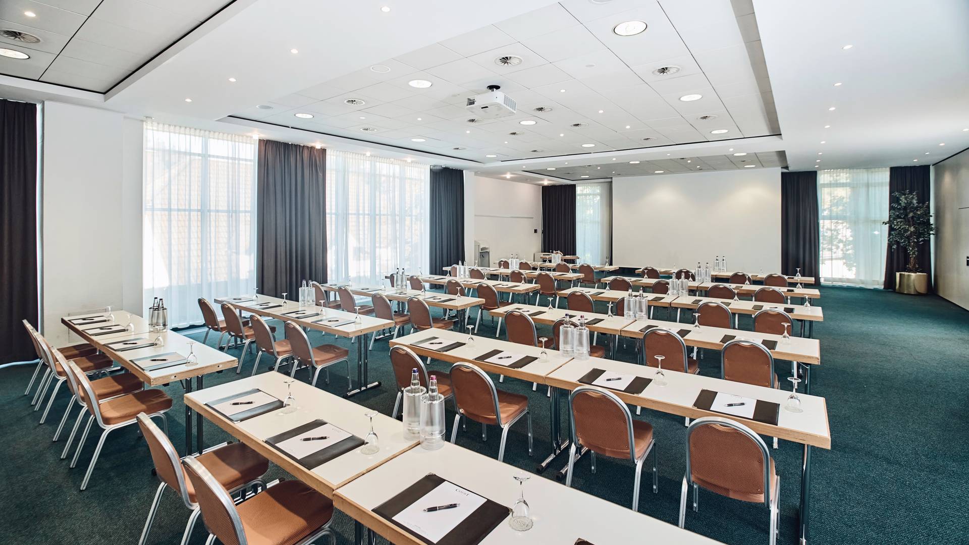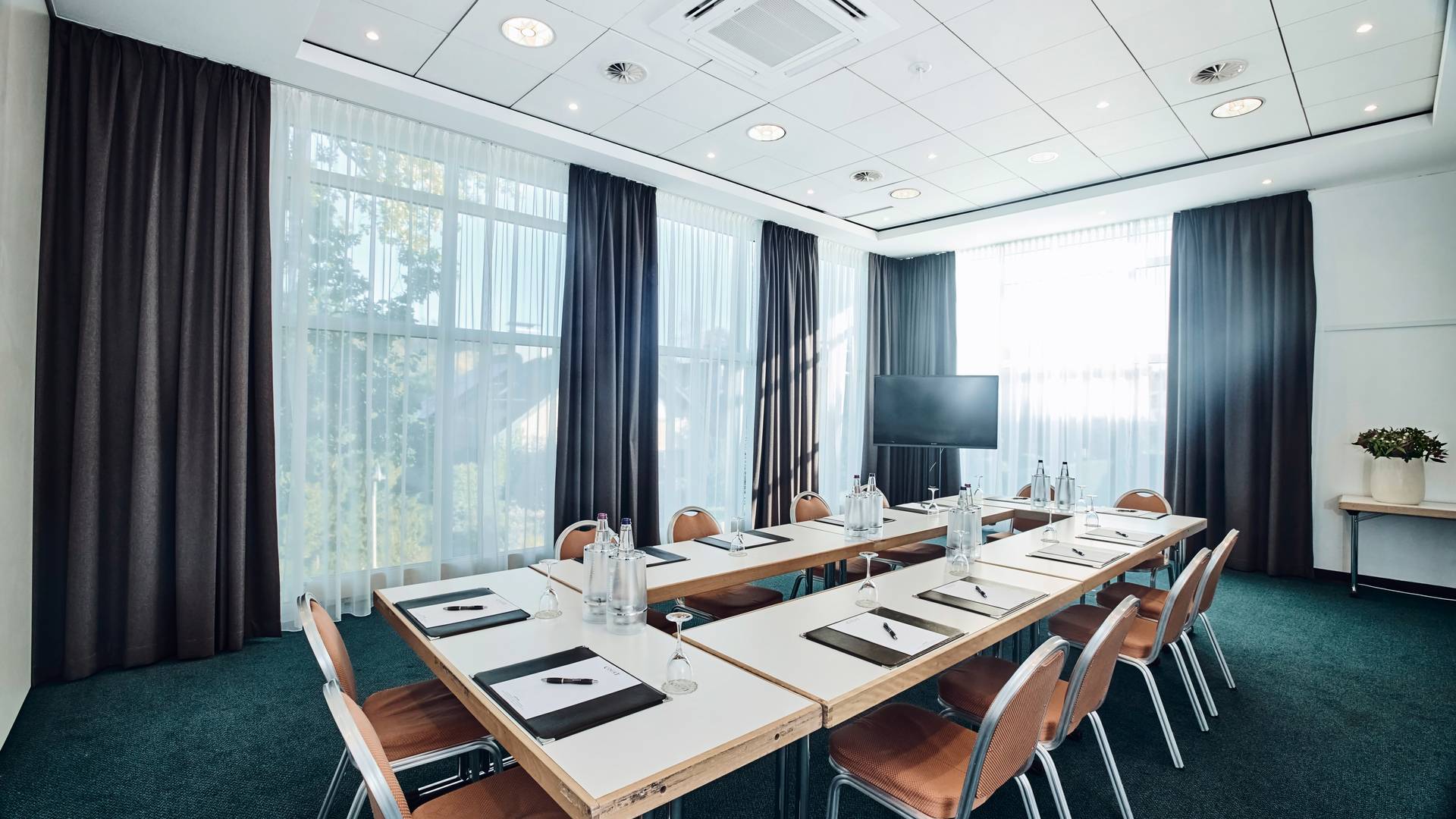 Sechs Tagungsräume und eine Business Suite. Mit einer Kapazität von bis zu 150 Personen bei einer zusammenhängenden Veranstaltung sowie Präsentations- und Audiotechnik in unseren klimatisierten Tagungsräumen sind alle Voraussetzungen gegeben, um Tagungen, Workshops, Konferenzen oder kleine Messen erfolgreich und produktiv zu veranstalten.